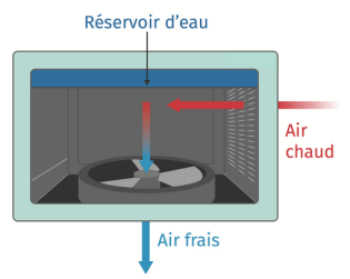On parle aussi de rafraîchissement par évaporation (RAE) ou de climatisation naturelle et écologique.