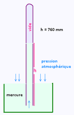 Torricelli remplit un tube de verre de mercure, puis boucha l'extrémité ouverte avec son doigt, retourna le tout et immergea l'ouverture dans une bassine de mercure. Lorsqu'il retira son doigt, la colonne de mercure descendit un peu et s'arrêta. L'espace en haut de la colonne était donc vide. La colonne de mercure se maintient à cause de la pression de l'air sur le bassin. Selon les conditions météorologiques, la hauteur de cette barre peut varier.