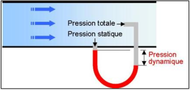 La pression totale c'est la somme de la pression statique et de la pression dynamique.