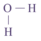 Dans la formule brute de l’eau, \(\ce{H-O-H}\), les tirets représentent les paires d’électrons partagées par H et O :