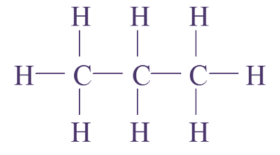 3 C, 8 H : molécule de propane