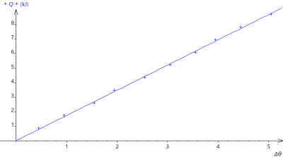 Or la courbe \(Q=f \left( \Delta \theta \right )\) est une droite passant par l'origine d'équation \(Q=a \times \Delta \theta\).