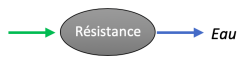 Q1. Compléter le schéma ci-contre illustrant les échanges énergétiques entre le système résistance et l'extérieur. On admettra que le travail électrique \(\mathbf{W_{el}}\) reçu est intégralement transformé en énergie thermique \(\mathbf{Q}\).