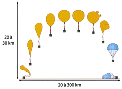 Doc.6 : Le volume du ballon-sonde augmente lorsqu’il monte dans les hautes couches de l’atmosphère car la pression diminue. Il finit même par éclater à une certaine altitude et la nacelle redescend en parachute.