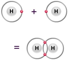 Chaque atome d’hydrogène met en commun son électron pour former la molécule de dihydrogène.