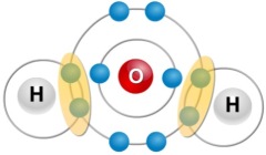 Chaque atome d’hydrogène met en commun avec l’atome d’oxygène son électron pour former la molécule d’eau.