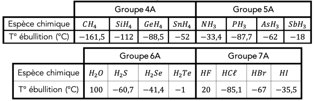 Q17. De quoi la température d’ébullition des molécules du groupe 4A dépend-elle ?