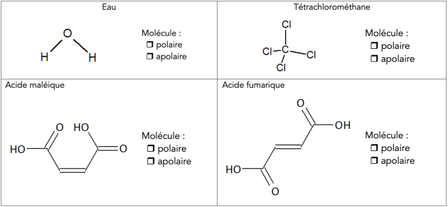 Q8. Comment déterminer si la molécule est polaire ? Préciser la polarité des molécules dans le tableau précédent ?