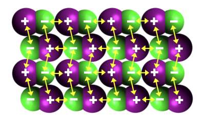 Le chlorure de sodium est un solide ionique. Sa cohésion est donc assurée par l’interaction électrostatique, dont la portée est beaucoup plus importante que celle des forces de Van der Waals. Les liaisons entre ions seront donc plus difficiles à briser que celles entre atomes de brome dans le dibrome, qui ne sont soumis qu’à l’interaction de Van der Waals, faible et à très courte portée.