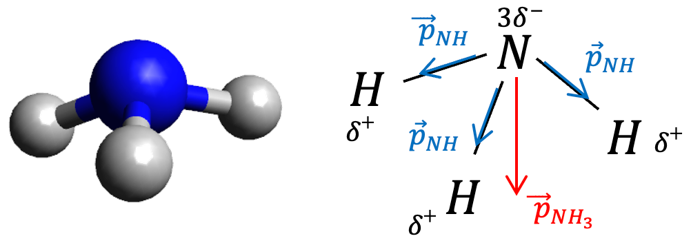 La polarité d’une molécule est la somme vectorielle de tous les moments dipolaires \(\large \vec{\ p}\) des différentes liaisons la constituant :