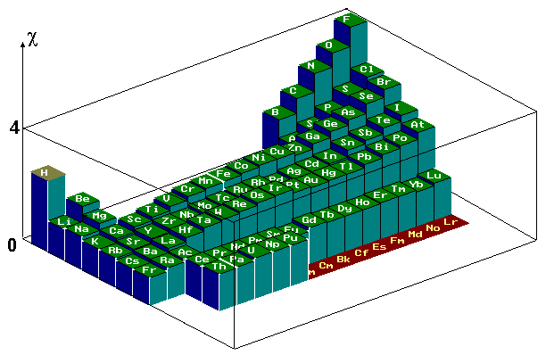 Quelques valeurs d’électronégativité dans l’échelle de Pauling :