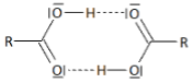 En pointillé, sont représentées les liaisons hydrogène intermoléculaire entre 2 molécules RCOOH.