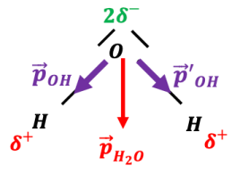 La somme des deux moments dipolaires n’est pas nulle, donc la molécule d’eau est polaire. Elle peut donc être sensible à une électrisation.