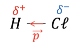 Polarisation de la liaison \(\ce{H-C\ell}\) et représentation de son moment dipolaire \(\vec{p\ }\)