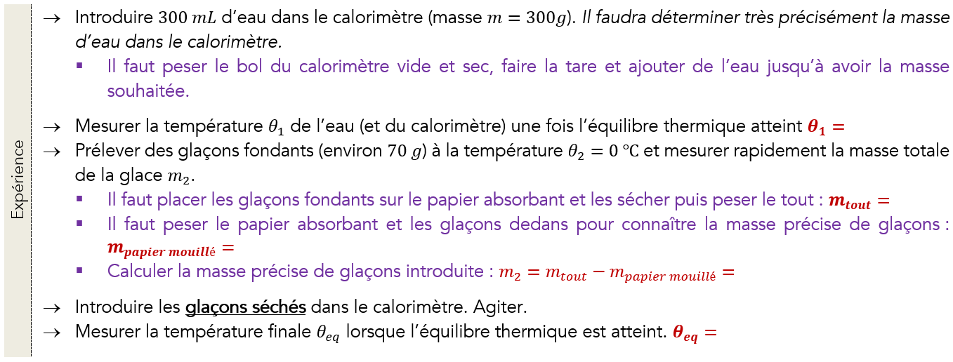 Il faudra demander au professeur la valeur de \(C_{calo}\) à prendre pour votre calorimètre