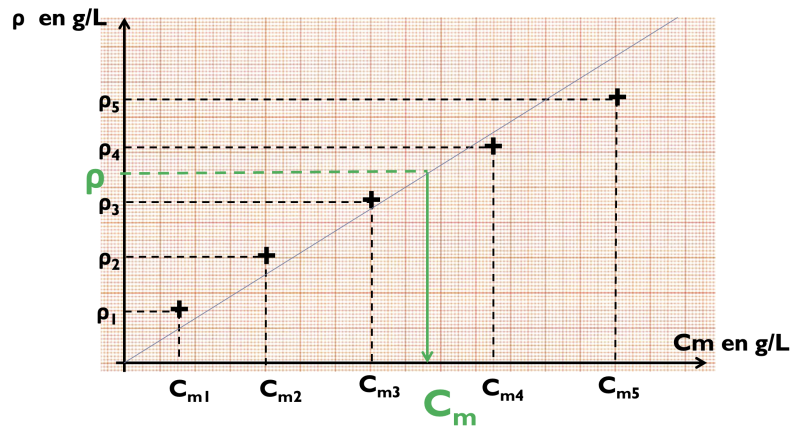 On détermine la masse volumique de la solution inconnue, puis par comparaison on va trouver un encadrement de sa concentration.