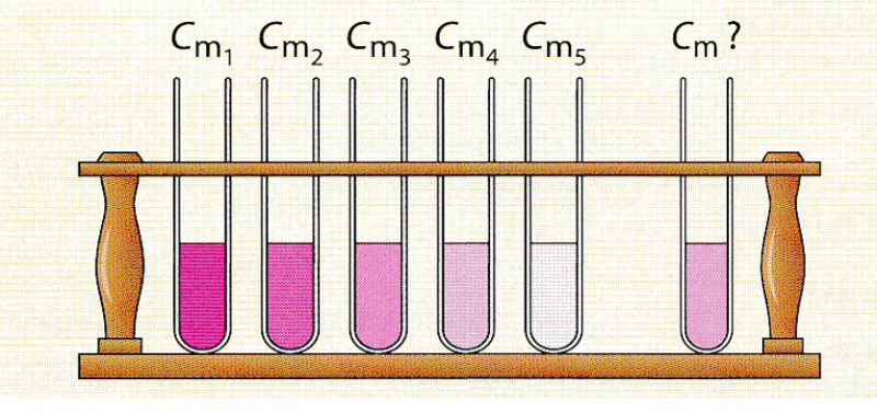 Il s’agit de déterminer la concentration d’une solution inconnue par comparaison avec plusieurs solutions connues.
