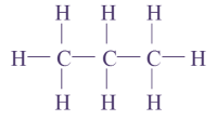 3 C, 8 H : molécule de propane