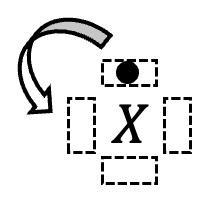 Écrire le symbole de l’atome et placer les électrons de valence, un par un, « en tournant » autour du symbole de l’atome selon les quatre directions : haut, gauche, bas et droite. Plusieurs tours autour du symbole de l’atome peuvent être réalisés.