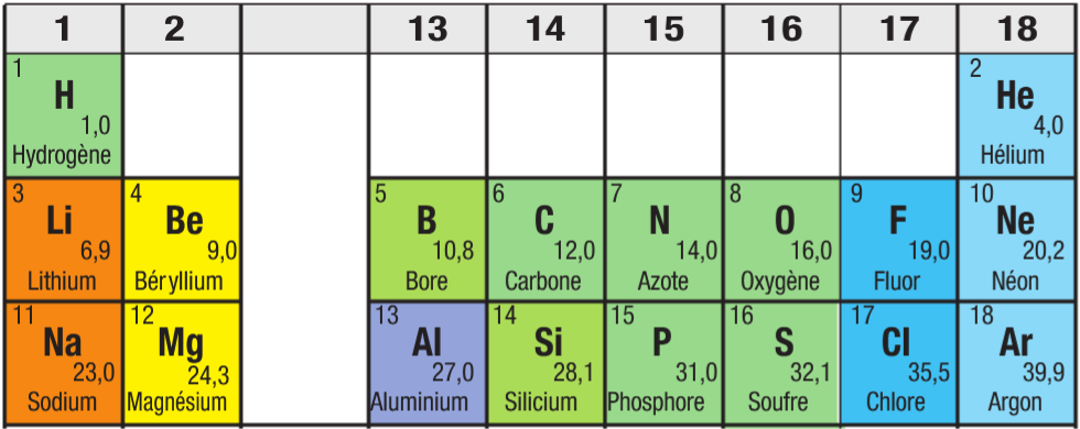 Si l’espèce est composée d’un seul élément, alors sa masse molaire est indiquée dans le tableau périodique. On dit que c’est la masse molaire de l’atome qui correspond à l’élément.