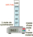 \(M \left( \ce{C6H12} \right)=6\times M\left( \ce{C} \right)+12\times M\left( \ce{H} \right)=6 \times 12,0 + 12 \times 1,0=84,0\ \mathrm{g \cdot mol^{-1}}\)