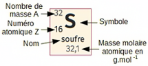 Une mole de soufre contient \(\mathbf{6,022\cdot 10^{23} \ \mathrm{mol^{-1}}}\) atomes de soufre