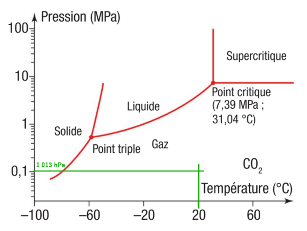 đ Diagramme Pression - tempĂ©rature du dioxyde de carbone.â