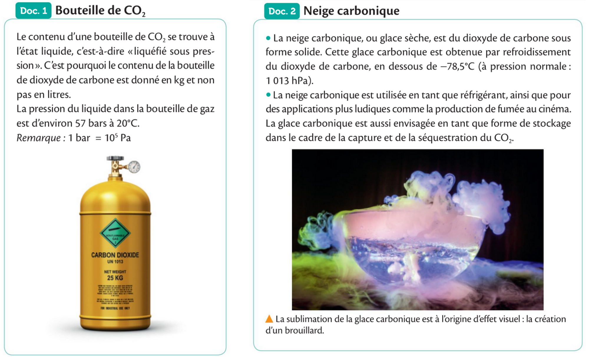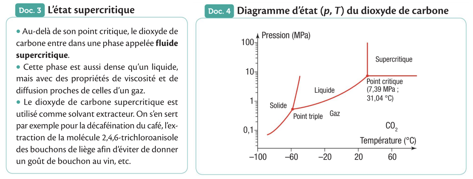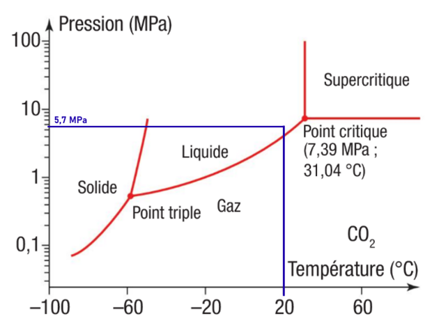 Q9. En utilisant le document 4, justifier lâĂ©tat du dioxyde de carbone dans la bouteille du document 1.