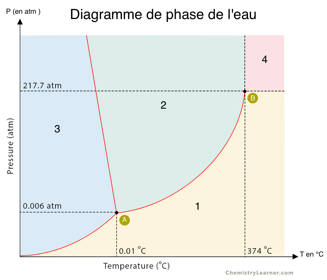 On Ă©tudie les changements dâĂ©tat avec un diagramme Pression Vapeur qui indique le domaine dâexistence (pression et tempĂ©rature pour chaque Ă©tat de la matiĂšre (solide, liquide et gaz).