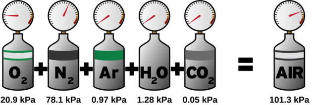 Les gaz se dissolvent, diffusent et réagissent selon leur pression partielle, donc ni selon la pression totale, ni selon leur concentration dans le mélange de gaz ou dans le liquide où ils sont dissouts.