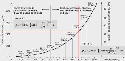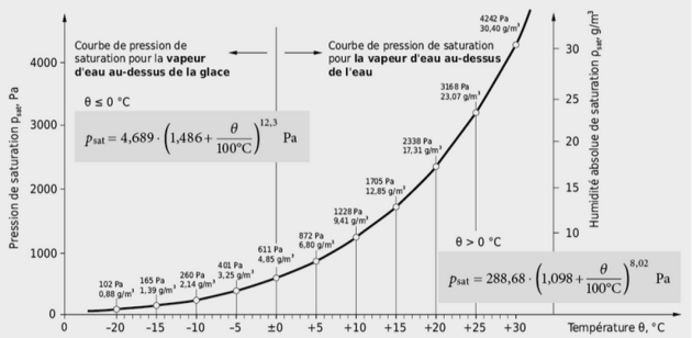 La quantité maximale de vapeur d’eau que peut contenir un volume d’air est décrite par un paramètre appelé : « pression de vapeur d’eau saturante »
