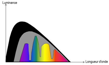 Les corps gris : l’émissivité \(\varepsilon\) est constante selon la longueur d’onde ;