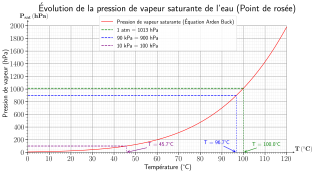 Le point de rosée dépend de la pression de vapeur d’eau.