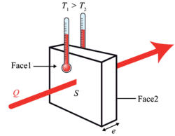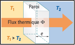 Le flux thermique \(\large \Phi\) Ă travers une paroi (loi de Fourier)Â :