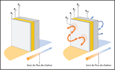 La convection agit aussi sur la résistance thermique d'une paroi.
