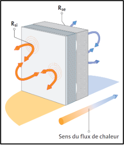 La rĂ©sistance thermique dâĂ©change superficielle (\(R_\text{si}\) "et" \(R_\text{se}\) ) :