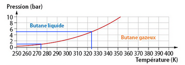 Température du butane | \(0,0\ \mathrm{^\circ C}\) | \(50,0\ \mathrm{^\circ C}\) |