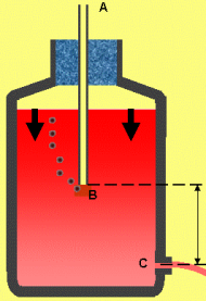 On peut faire varier le débit d'écoulement en modifiant la hauteur entre l'extrémité du tube plongeant (B) et la canalisation horizontale (C).