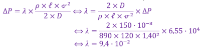 Les pertes de charges linéaires se calculent à l'aide de la relation :