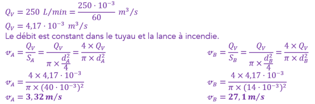Q9. (RÉA) Calculer alors la vitesse d'écoulement dans la canalisation (au niveau du robinet F) puis le débit volumique dans cette canalisation.