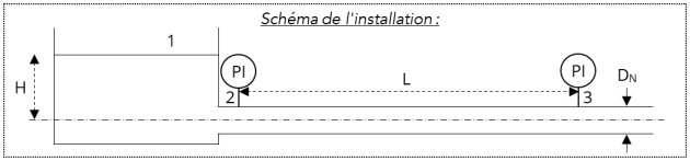 \(\large q_\mathrm{V}\) : vitesse moyenne du fluide, exprimée en \(\mathrm{m^3.s^{-1}}\) ;