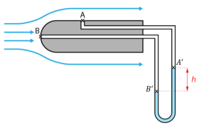 Q26. (RÉA) En déduire la différence de pression \(\large p_\mathrm{B}-p_\mathrm{A}\) en fonction de la dénivellation \(\large h\).