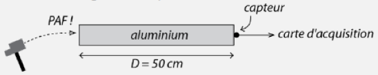Ainsi l'onde de compression a parcouru une distance \(d=2\times 3 \times 50\ \mathrm{cm}=300 \ \mathrm{cm}=3,0\ \mathrm{m}\).